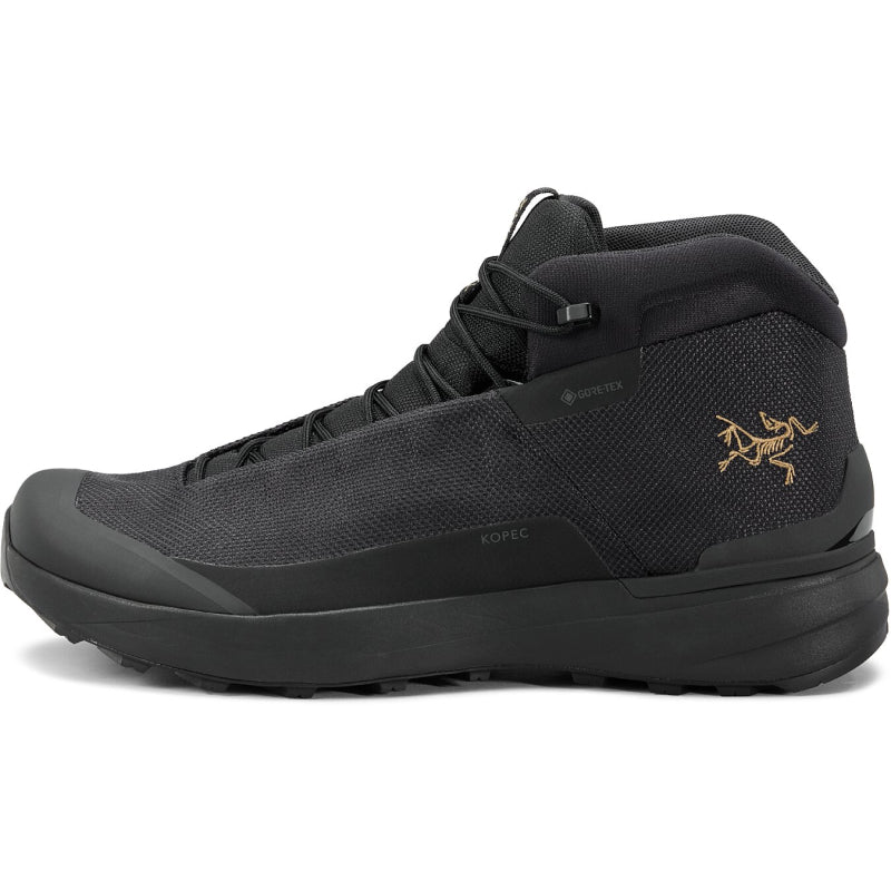 The Arc'teryx Kopec Mid GTX Boot for men offers agile, lightweight support ideal for all-season hiking across varied terrain. Designed for day trips and minimalist multiday treks, it features PFAS-free GORE-TEX protection to keep feet dry in wet conditions. The durable yet breathable CORDURA mesh upper enhances comfort, while the molded ankle pad and wide toe box ensure stability and natural foot movement. A dual-density midsole provides cushioning and support, and the Vibram Megagrip outsole with custom lugs delivers reliable traction on diverse surfaces.