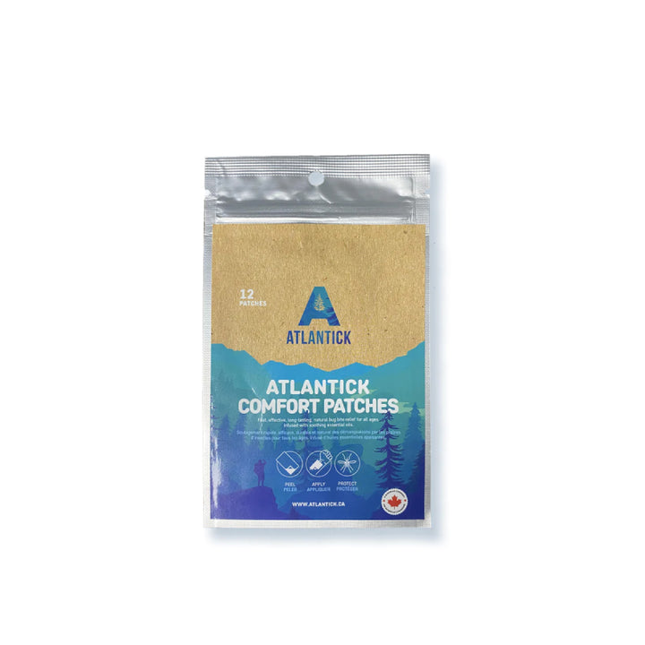 Introducing the AtlanTick Comfort Patches, the ultimate solution for providing relief from insect bites and skin irritations. Crafted with latex-free medical cloth and infused with the rejuvenating scents of peppermint, lavender, geranium, and mugwort essential oils, these patches not only offer comfort, but also the added benefits of aromatherapy.