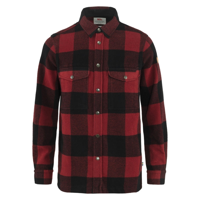 This hardy shirt is crafted from recycled wool flannel, offering the best of both worlds: the warmth of wool and the strength of synthetic fibers. It also features G-1000 details on the collar, cuffs, pocket flaps, and front opening for added durability. The chest pockets are situated slightly lower for effortless accessibility. Perfect for use as a lightweight jacket in mild autumn weather or as a sturdy insulating mid layer on chilly mountain excursions.