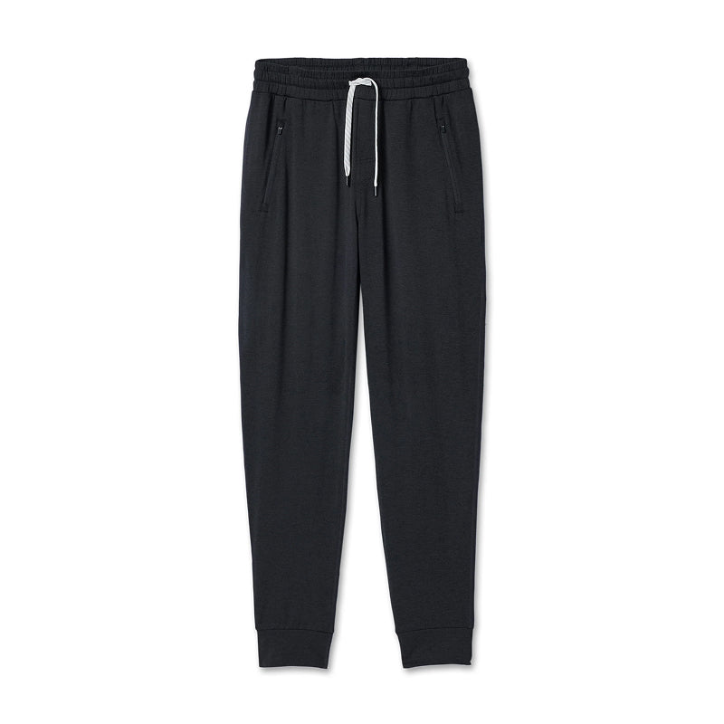 Crafted from DreamKnit™, an ultra-soft, brushed performance stretch fabric made with recycled materials, the Vuori Men's Ponto Performance Jogger offers exceptional comfort and moisture-wicking properties. Designed with an elastic waistband and signature drawcord for a secure fit, these joggers feature zip pockets to keep essentials safe and accessible. Ideal for training, travel, or relaxing, they combine sustainability with functionality for versatile everyday wear.