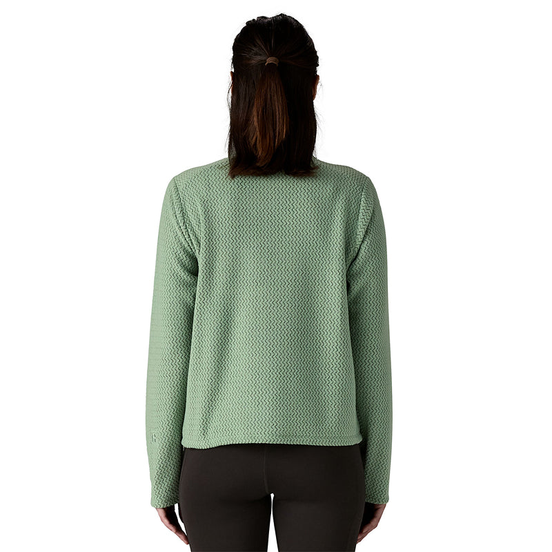 The Patagonia Women's R1 Air Crew is a technical fleece designed for intense activity in cold weather. Crafted from 100% recycled polyester, it offers lightweight breathability and rapid moisture drying to keep you comfortable. Its ergonomic structure supports unrestricted movement, making it ideal for high-exertion outdoor pursuits. Additionally, this garment is Fair Trade Certified™ sewn, ensuring ethical manufacturing standards.