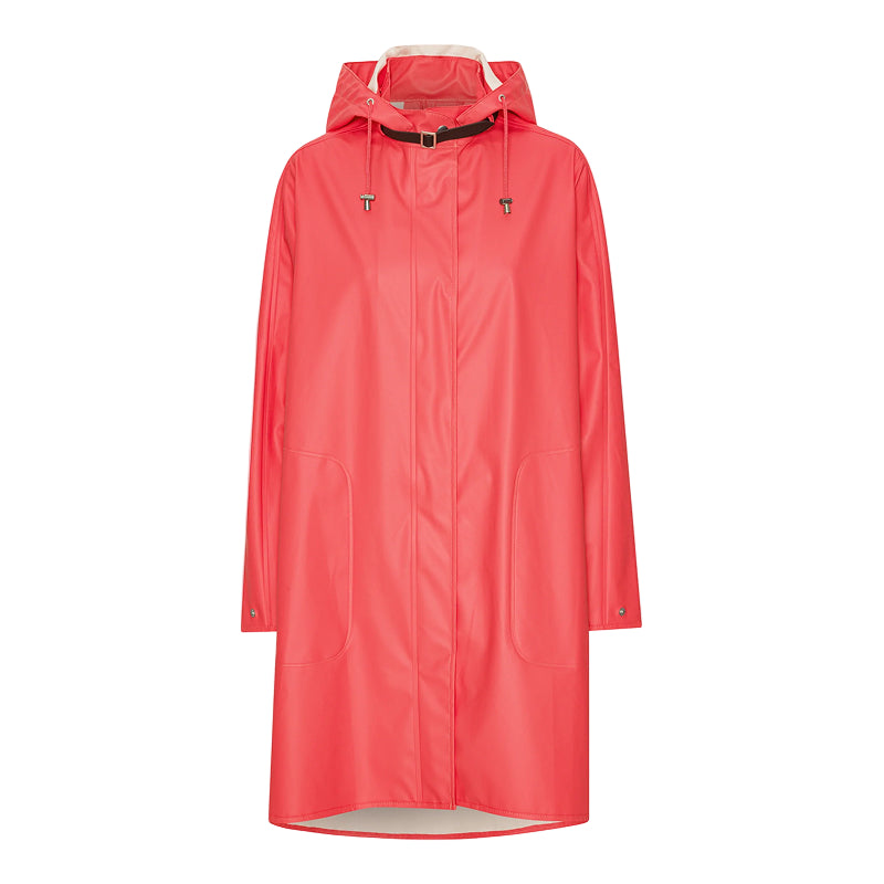 ILSE JACOBSEN HORNBÆK's RAIN71 is a contemporary, A-line version of the traditional raincoat. It boasts a waterproof 5000 MM rubberized PU exterior and a soft tricot lining for year-round comfort. The detachable hood, adjustable cuffs, and spacious side pockets ensure both dryness and style, while discreet press buttons and side slits provide extra mobility - making it perfect for walks, bike rides, or any rainy-day escapade. With multiple length and color options, this versatile piece can be layered with sweaters or quilted jackets to combat cooler temperatures.