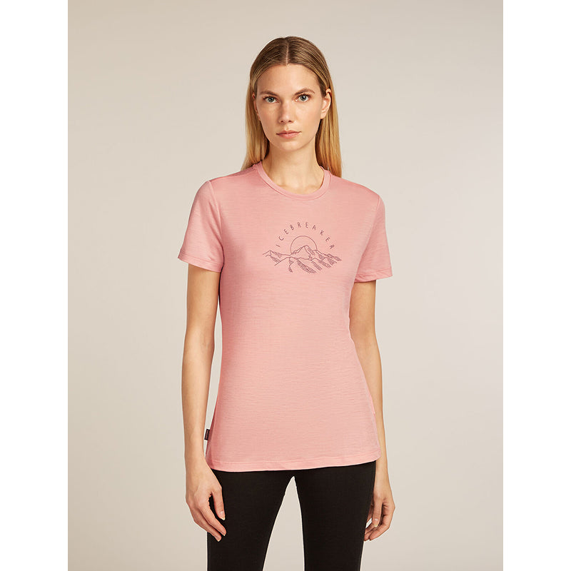 The Icebreaker Women's Merino 150 Tech Lite Short Sleeve T-Shirt Sunrise Summit combines natural performance with expert design. Crafted from 100% merino wool, it offers superior breathability, moisture management, and odour resistance, making it ideal for year-round wear. The lightweight fabric adapts effortlessly to changing conditions, ensuring comfort across all seasons. Featuring a retro-inspired sunrise mountain graphic, this tee blends functional innovation with timeless style, perfect for those seeking reliable gear for any adventure.
