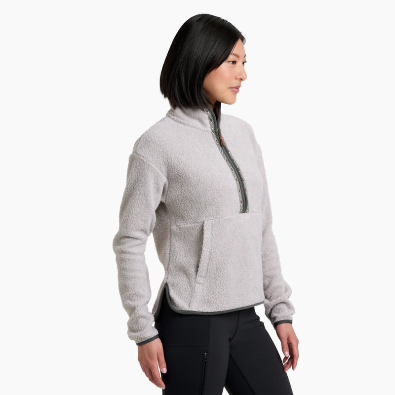 Restez au chaud et confortable avec le pull demi-zippé Hygge de Kuhl. Fabriqué avec notre polaire sherpa mélangée, ce pull demi-zippé ultra-doux offre à la fois confort et style. La bordure en ruban héritage ajoute une touche unique tandis que la coupe carrée moderne et les poches kangourou en font un essentiel polyvalent pour toutes les saisons.