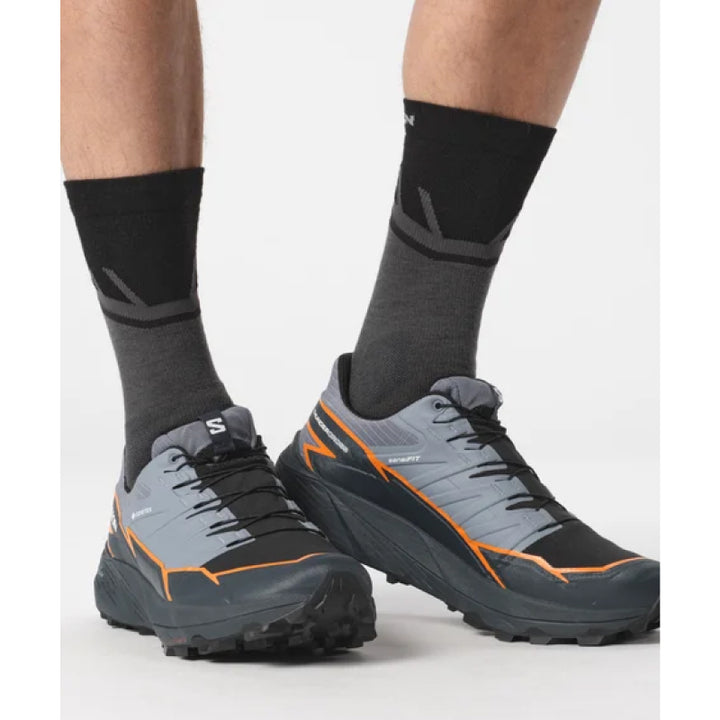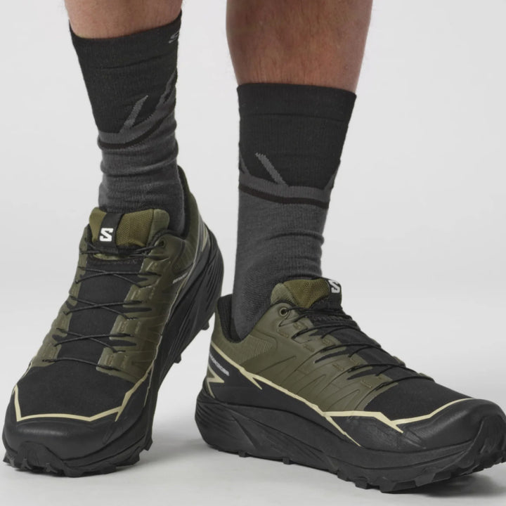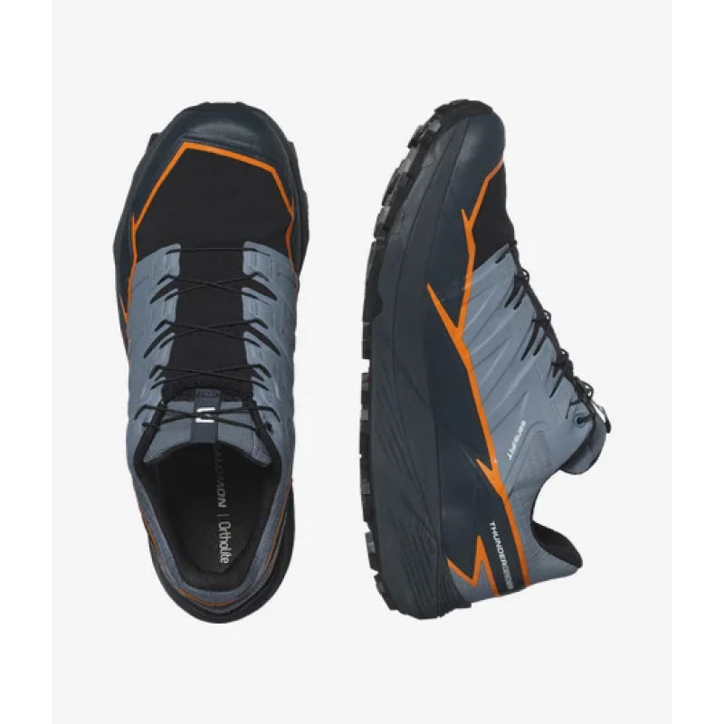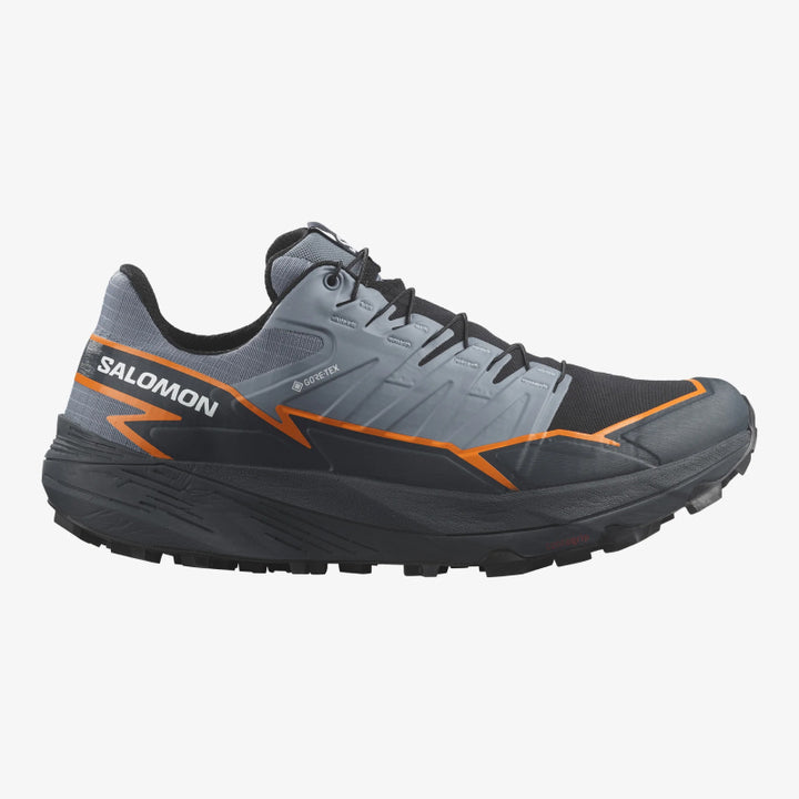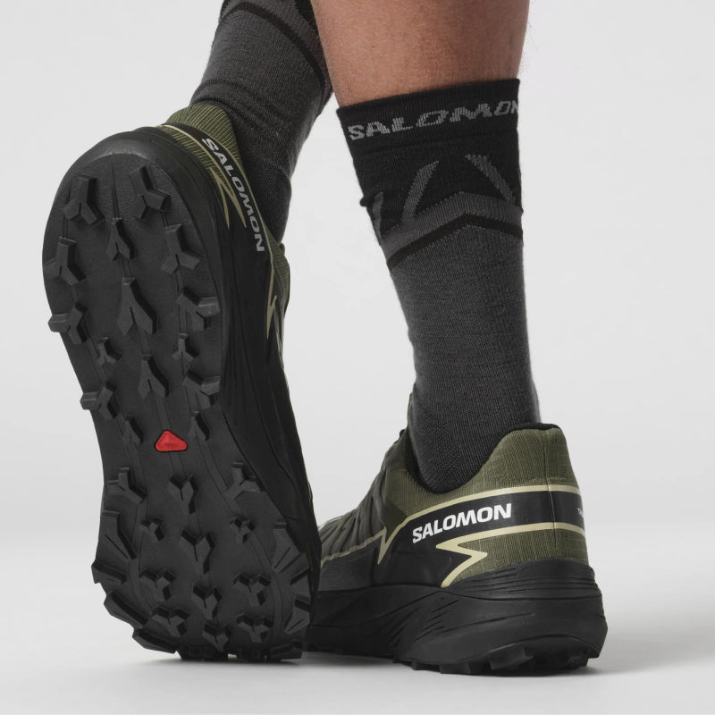Découvrez la chaussure de trail ultime avec la THUNDERCROSS GORE-TEX de Salomon. Profitez d'une foulée dynamique et amortie avec une adhérence et un maintien supérieurs grâce à ses crampons agressifs de 5 mm. Développée dans les Alpes françaises et testée sur différents terrains, cette chaussure peut affronter tout, des terrains vallonnés aux pentes rocheuses.