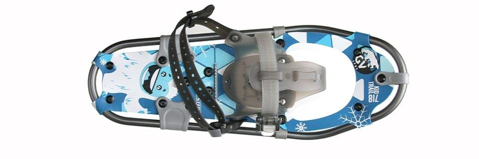 Un mécanisme empêche le harnais de pivoter, unissant le harnais et la raquette. Il empêche la chaussure de s'enfoncer dans la neige, ce qui rend l'apprentissage du sport plus facile et plus amusant pour les enfants. La géométrie des raquettes offre une excellente flottaison.