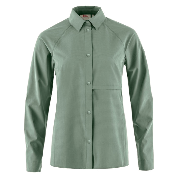 Même les journées les plus chaudes sur les sentiers de randonnée seront faciles à apprécier avec cette chemise de trekking Abisko pour femme. Fabriqué à partir d'un tissu extensible léger et technique qui évacue l'humidité et laisse passer l'air en même temps. Les manches raglan maintiennent les coutures volumineuses à l'écart des bretelles du sac à dos et le col peut être relevé et fixé en place pour une protection supplémentaire contre le soleil. La coupe flatteuse est légèrement plus longue à l'arrière et possède une poche avant zippée avec doublure en maille positionnée sous la poitrine.