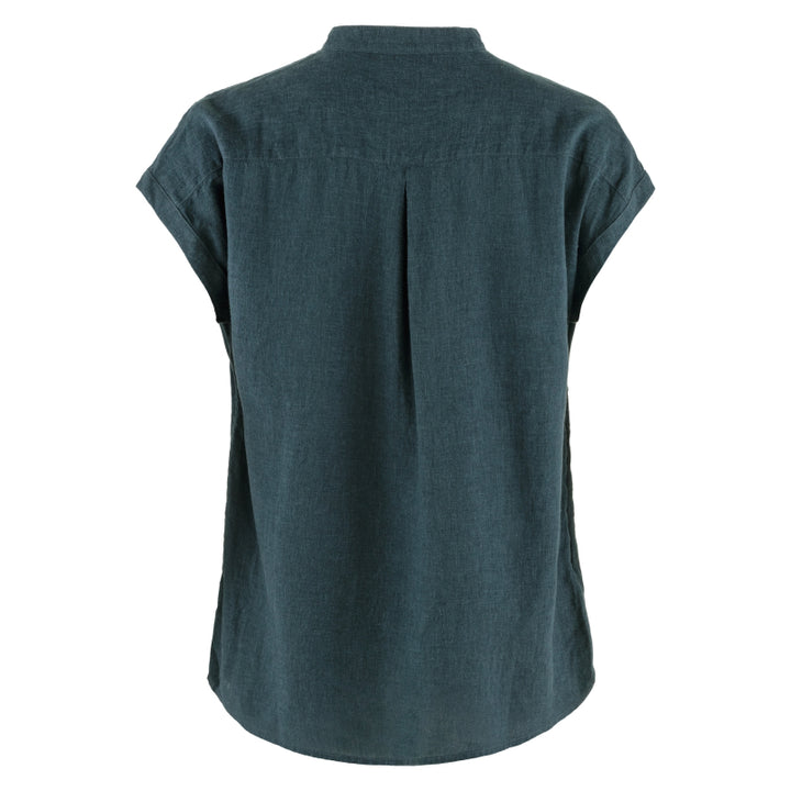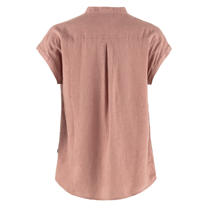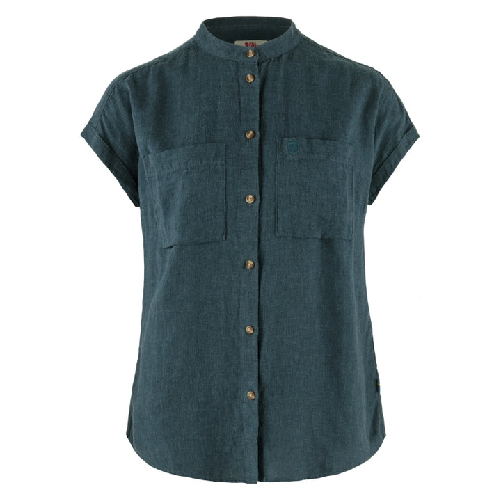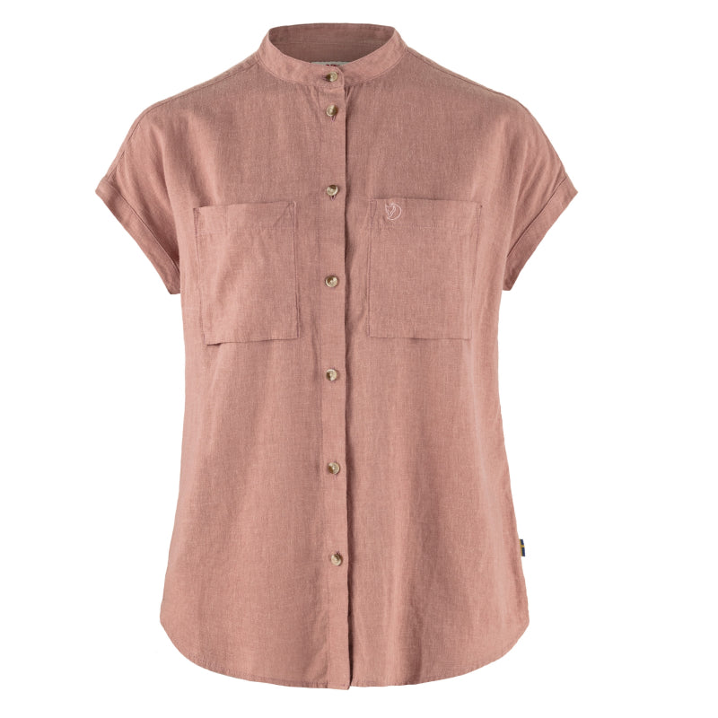 La chemise à manches courtes Övik Hemp de FJÄLLRÄVEN pour femme est un mélange léger de chanvre et de lyocell, parfait par temps chaud. Sa coupe décontractée, son col officier et sa poche zippée cachée le rendent adapté au quotidien et aux voyages. Fabriquée en utilisant moins d'eau que le coton traditionnel, cette chemise est également très durable et sèche rapidement. Il présente une ouverture boutonnée sur le devant, deux poches poitrine ouvertes et une coupe féminine attrayante avec des détails tels que des pinces au buste et un pli creux inversé au dos.