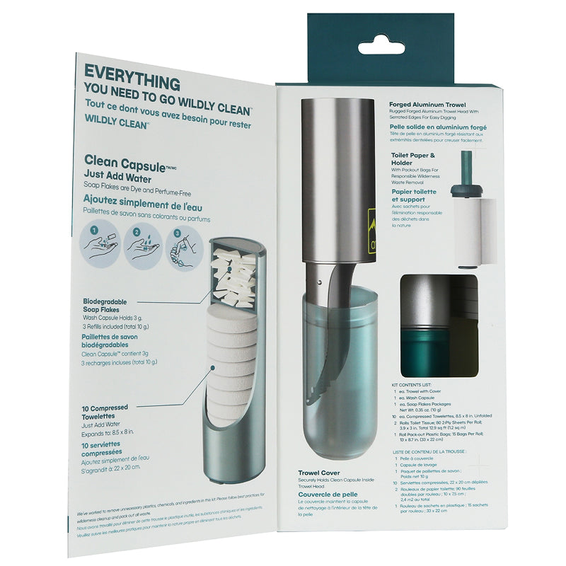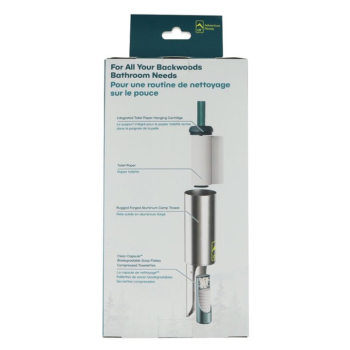 - All-in-One Outdoor Bathroom Kit - Answer the call of nature with this all-in-one bathroom kit with a trowel, toilet paper, pack out baggies, and our Clean Capsule for easy hand washing.