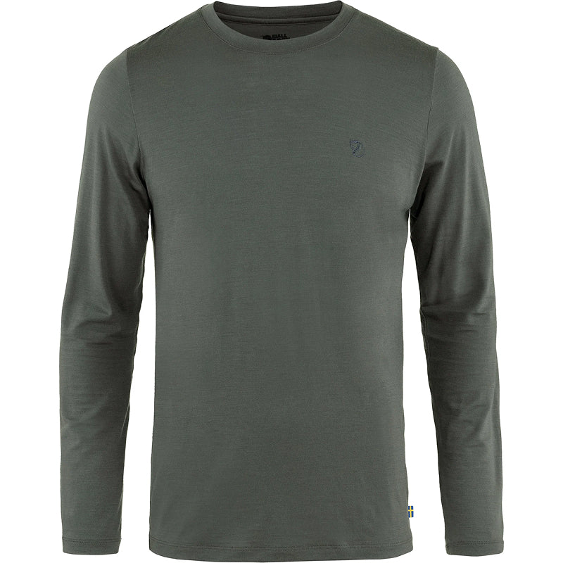 Lightweight, long-sleeved top in a soft jersey knit made from merino wool and recycled polyester. Combines the temperature-regulating properties of wool fibres with the durability and moisture-wicking properties of synthetic ones. A perfect first layer in both warm and cold climates, and extra useful on multiday trips as wool naturally resists bad odours.