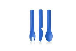 Trio est l'offre haut de gamme complète, avec une cuillère, une fourchette et un couteau de grande longueur (oui, qui coupe réellement). L'ensemble est livré dans un bel étui qui garde tout organisé, propre et prêt. Des mois ont été consacrés à concevoir le positionnement des ustensiles pour créer un boîtier d'une taille incroyablement fine. De petites touches réfléchies comme un ouvre-bouteille en métal dans le couteau et un cure-dent personnalisé en forme de coin/pointu complètent l'ensemble de repas ultime en déplacement.