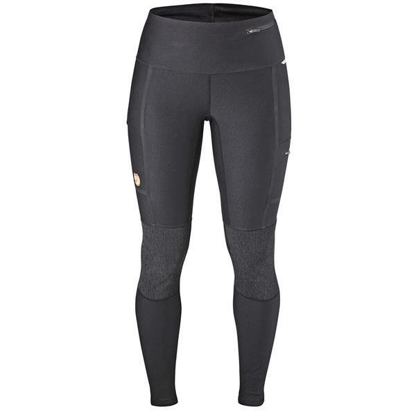 Technical trekking tights made from durable and highly functional stretch fabric. Practical pockets and reinforcements for extra durability in rough terrain. Technical and hardwearing trekking tights. Made from a dense, high-performance stretch fabric that is durable and wicks away moisture. Reinforcements at knees and rear for extra protection in rough terrain and when sitting down on damp ground. Comfortable, wide waistband that can be adjusted with a drawcord on the inside. Map pocket on right leg and a smaller zippered pocket on left leg.