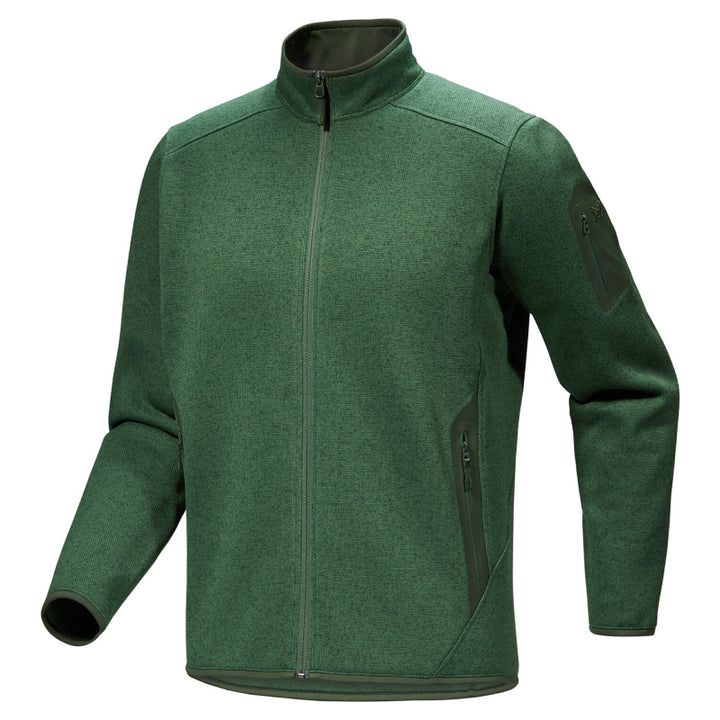 Stay warm and efficient when the chill creeps in with the Arc'teryx Covert Cardigan for Men. Made from 100% recycled polyester, the Alpenex II™ fleece is soft and looks like wool. With gusseted underarms for freedom of movement and laminated pockets for small essentials, this cardigan is both functional and stylish.