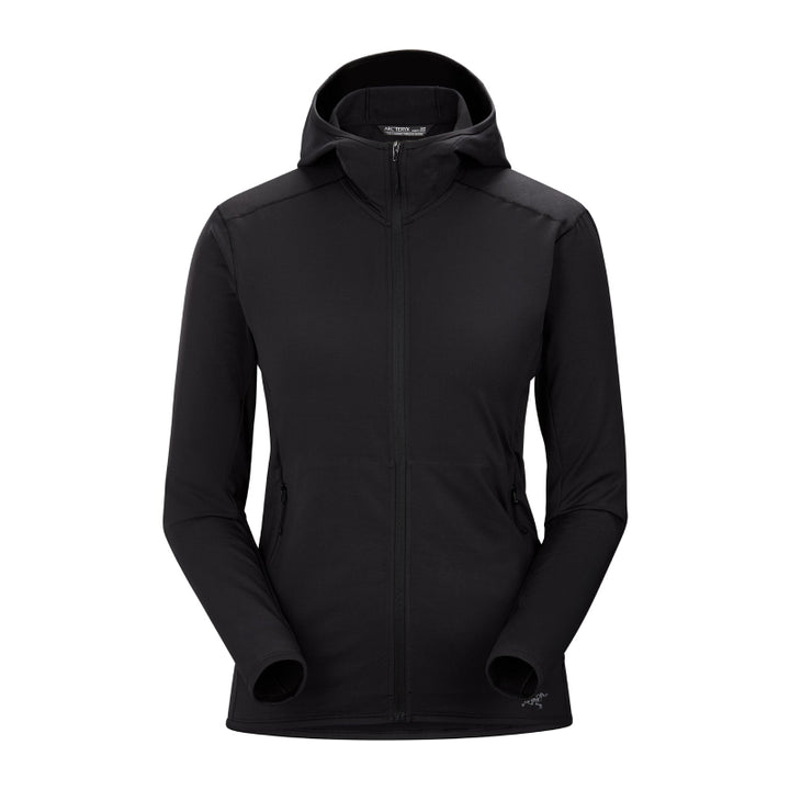 The Arc'teryx Kyanite LT Hoody for women offers lightweight warmth and comfort with its Torrent stretch fleece and Merrow stitch construction. The low profile hood and zippered hand pockets provide added warmth and functionality, while the kissing zipper chin guard protects against chafing for a comfortable experience. Expertly designed for all your outdoor adventures.