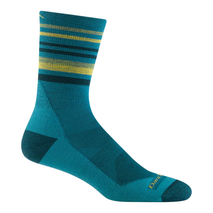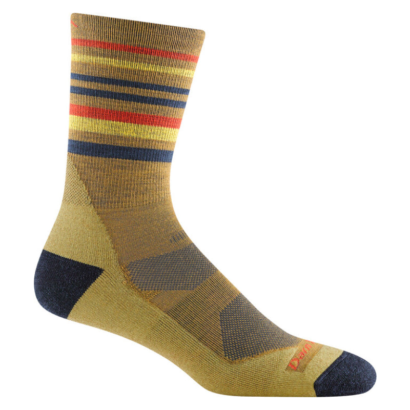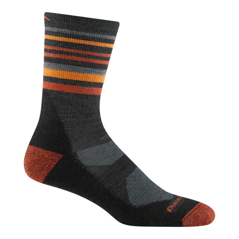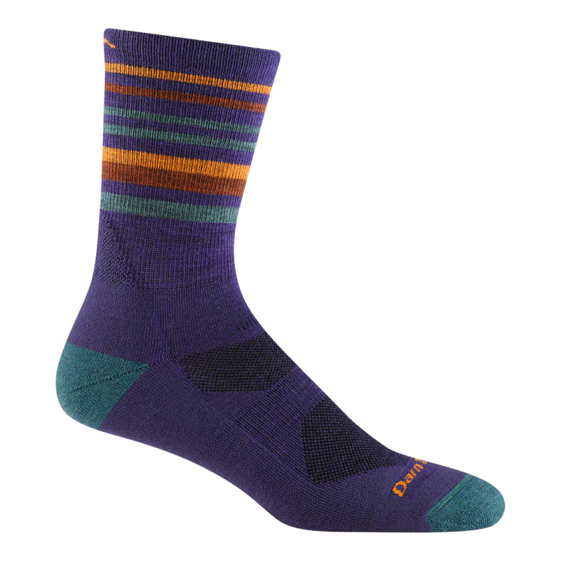 The Darn Tough Men's Fastpack Micro Crew Lightweight with Cushion Sock offers the ultimate hiking experience. With added arch support and Achilles cushioning, this top-of-the-line sock reduces fatigue and provides comfortable trekking for miles. Its superior breathability and snug, vertical fit ensure that it stays in place. The sleek striped design adds a touch of style to this advanced and durable sock, making it perfect for any trail adventure.