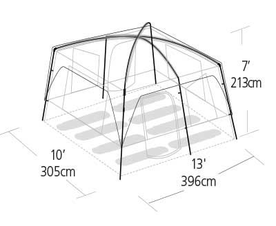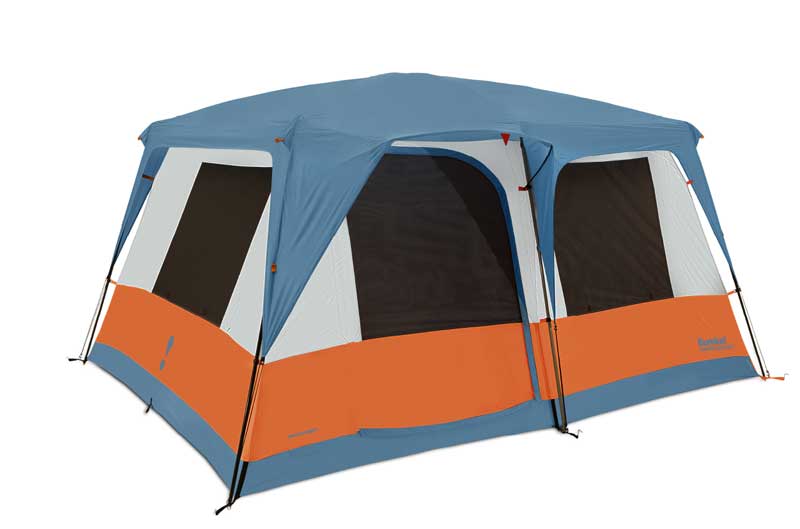 Featuring larger windows and doors for improved ventilation, as well as an extended front porch fly design that provides a dry entryway and additional wet weather protection. Copper Canyon’s easy setup, smart features, and full standing height make it Eureka!’s best valued car camping tent.