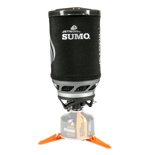 The SUMO packs the same regulator control as other Jetboil-regulated cooking systems, but with a higher-capacity cup-to-fuel cooking ratio for you and your friends. Jetboil's large 1.8-liter FluxRing cooking cup with insulating cozy is the ideal cooking vessel for groups. Jetboil's proprietary regulator technology offers incremental heat adjustments from light simmer to full boil, perfect for sautéing greens, simmering sauces, and more. Add the optional Jetboil Java Press, pot support, skillet, and FluxRing cooking pot to expand your meal options on the trail. Start heating instantly with the convenient, reliable pushbutton igniter—regulated for consistent performance down to 20 degrees F (-6 degrees C). Able to store 100-gram or 230-gram Jetpower fuel can with burner, fuel canister stabilizer, and accessory pot support; weighs 16 ounces.