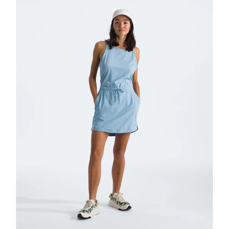 The Never Stop Wearing Adventure Dress for Women truly lives up to its name. Made with a fabric that is both 87% recycled and moisture-wicking, this sleeveless dress is perfect for all-day activities on and off the trail. With built-in bike shorts for coverage, compression, and storage, you can stay comfortable throughout your adventures.
