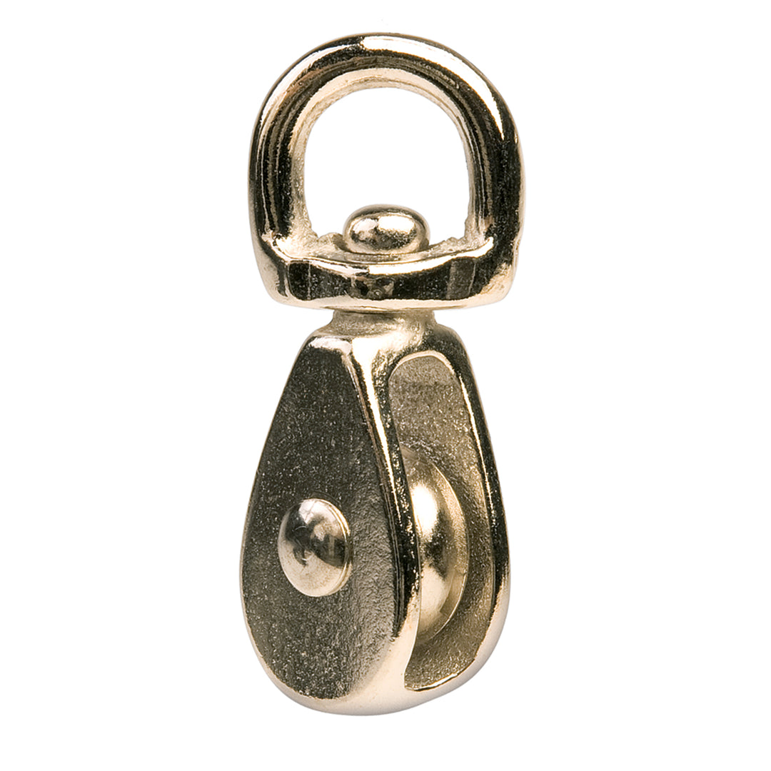 This pulley is made of high-grade cast iron (swivel eye and body), steel sheaves, and steel rivets. Used in many awnings and other pulley functions.