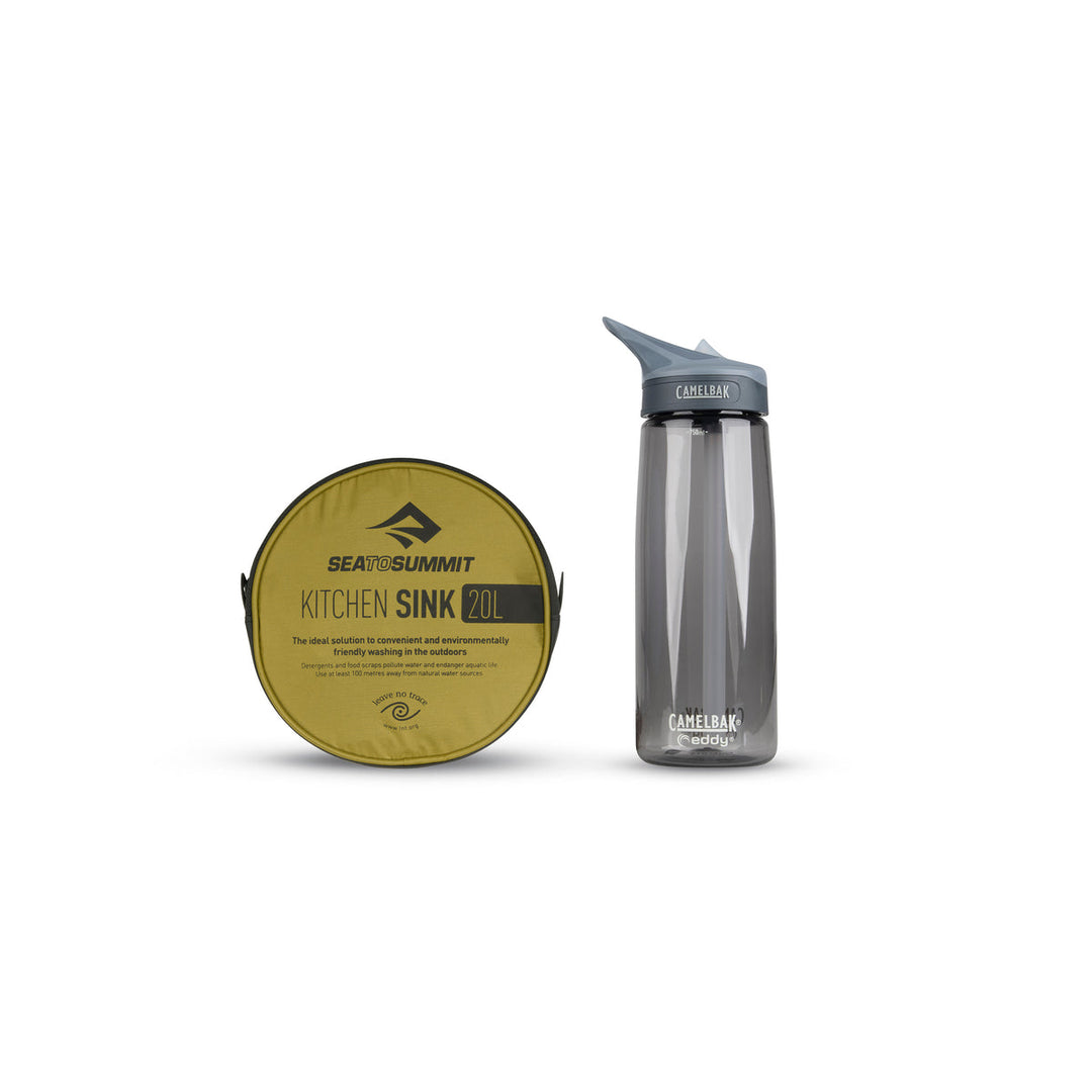 The Kitchen Sink is a portable collapsible camp sink that stands on its own when filled with water. Our sinks are great for collecting and carrying water for purification, cooking, washing dishes or personal bathing. They're ideal for backpacking or group camping and they make a great gift for those tricky outdoors people that seem to have everything, but the kitchen sink.