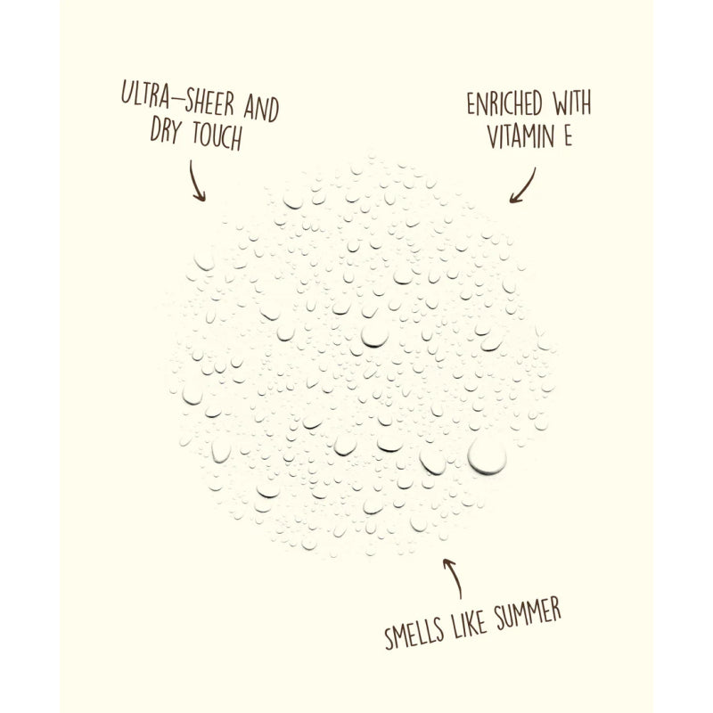 This spray sunscreen uses an ultra sheer and dry touch formula, making it convenient to apply. It effectively shields your skin from both UVA and UVB rays, while also providing nourishment through antioxidant Vitamin E. This helps combat the primary source of premature skin aging - free radicals.