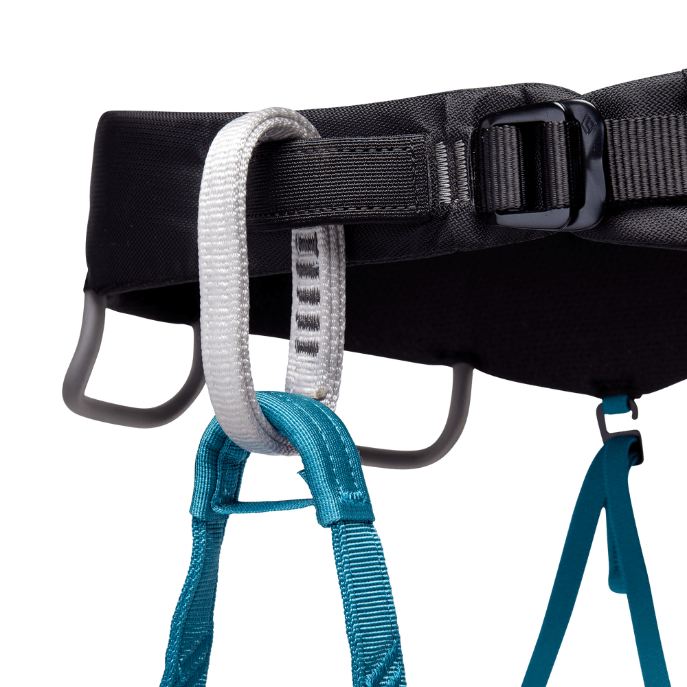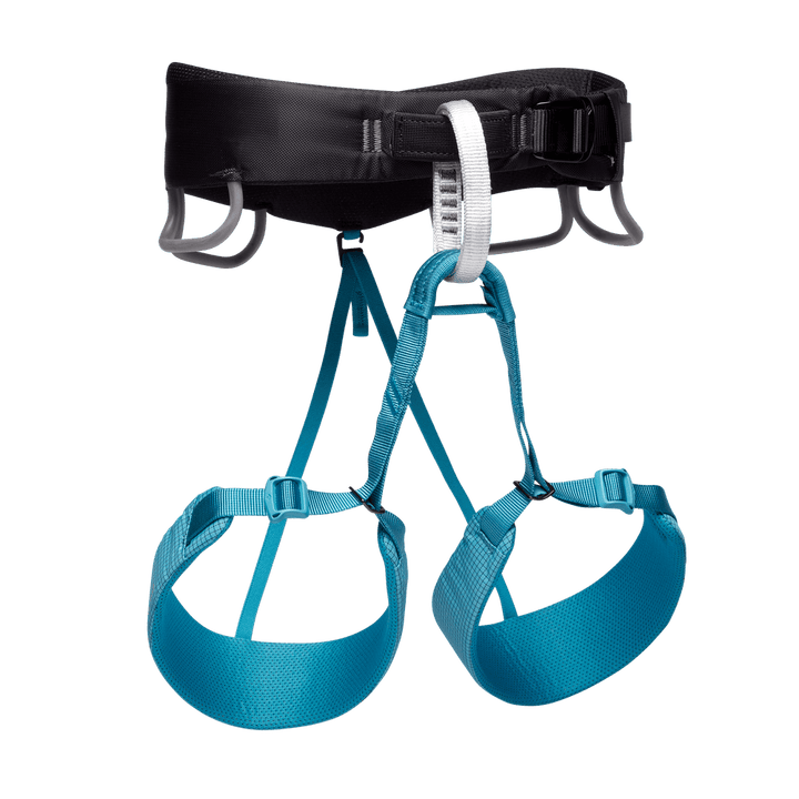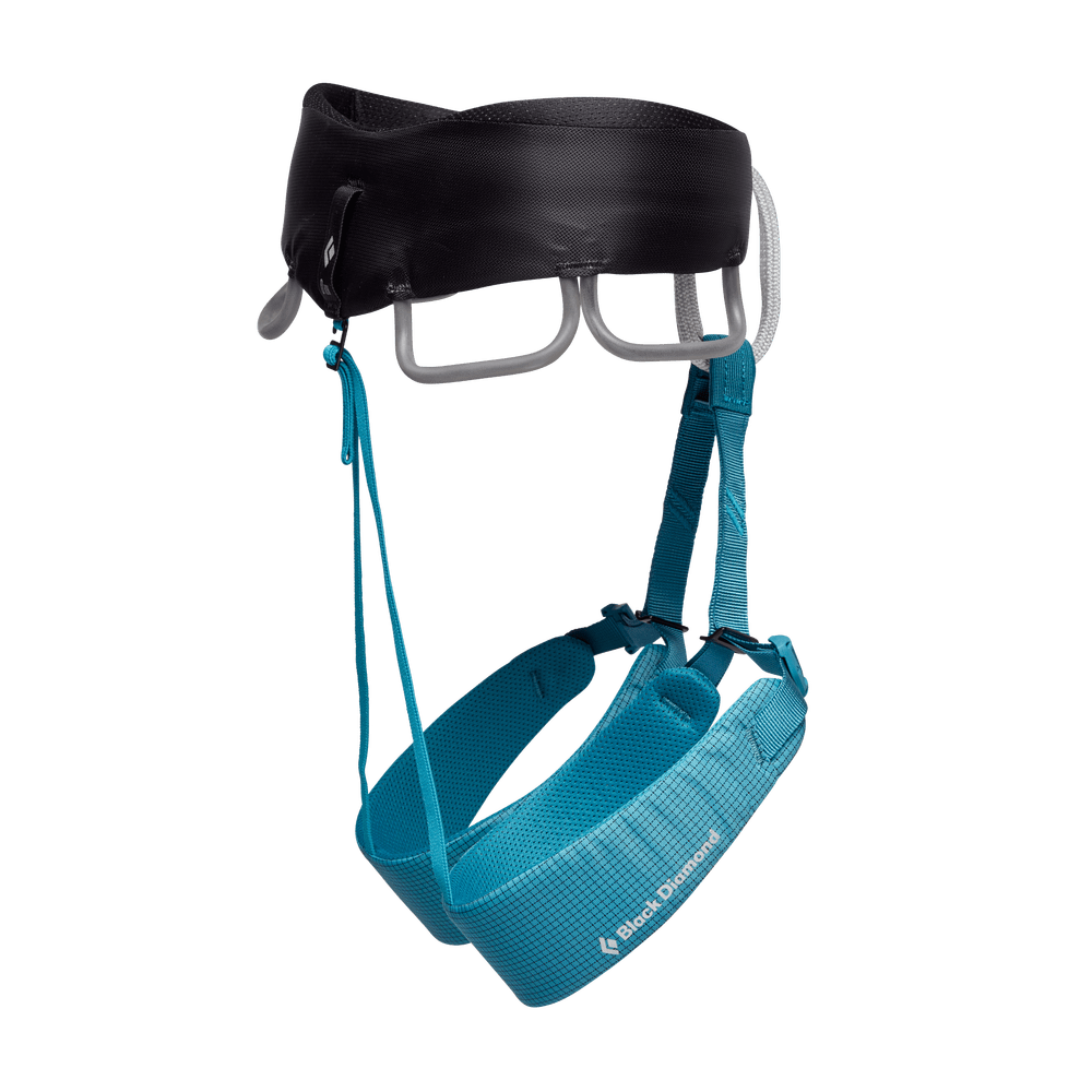 For all-around female climbers who know that time spent fiddling with leg loops and adjusting a pinching waistbelt is time wasted, the Women's Black Diamond Momentum Harness delivers a time-saving design for all styles of climbing. A pre-threaded Speed Adjust waistbelt buckle saves time and eliminates error when tying in, while Dual Core Construction⢠puts an emphasis on comfort, even when you're posted up at a hanging belay. TrakFIT leg-loops easily adjust for cool fall days at the crag or blazing summer days on long multi-pitches, and four pressure-molded gear loops and a haul loop make this our most popular all-rounder.
