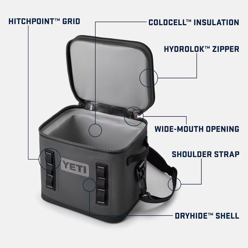 Meet the leakproof, tough-as-nails, carry-the-day soft cooler. Around here, we call it the Hopper Flip™ 12. Its wide-mouth opening makes for easy loading and access to your food and drinks. Its compact, cubed body means ultimate portability — go off-road, onto the water, and back again with this personal cooler. And its extreme insulation means your ice is staying ice.
